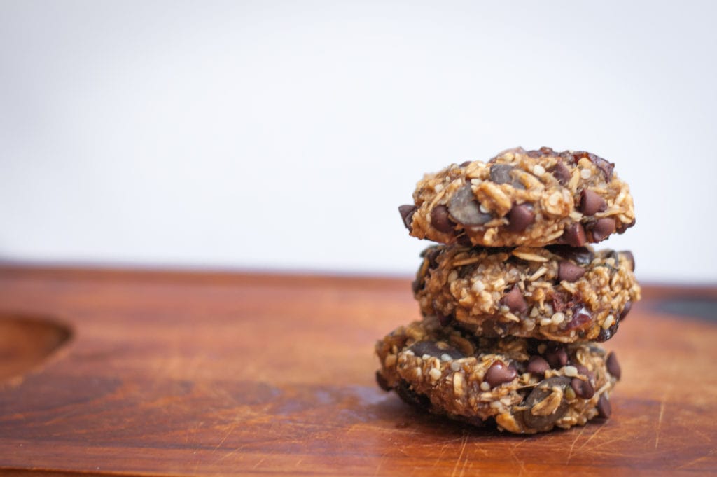 And what would a cookie be without any chocolate? With dark chocolate, the more cacao, the less sugar. If you are making this cookie to have at breakfast, I recommend using cacao nibs. The cookies are already sweetened from the dried cranberries, dates and bananas.
